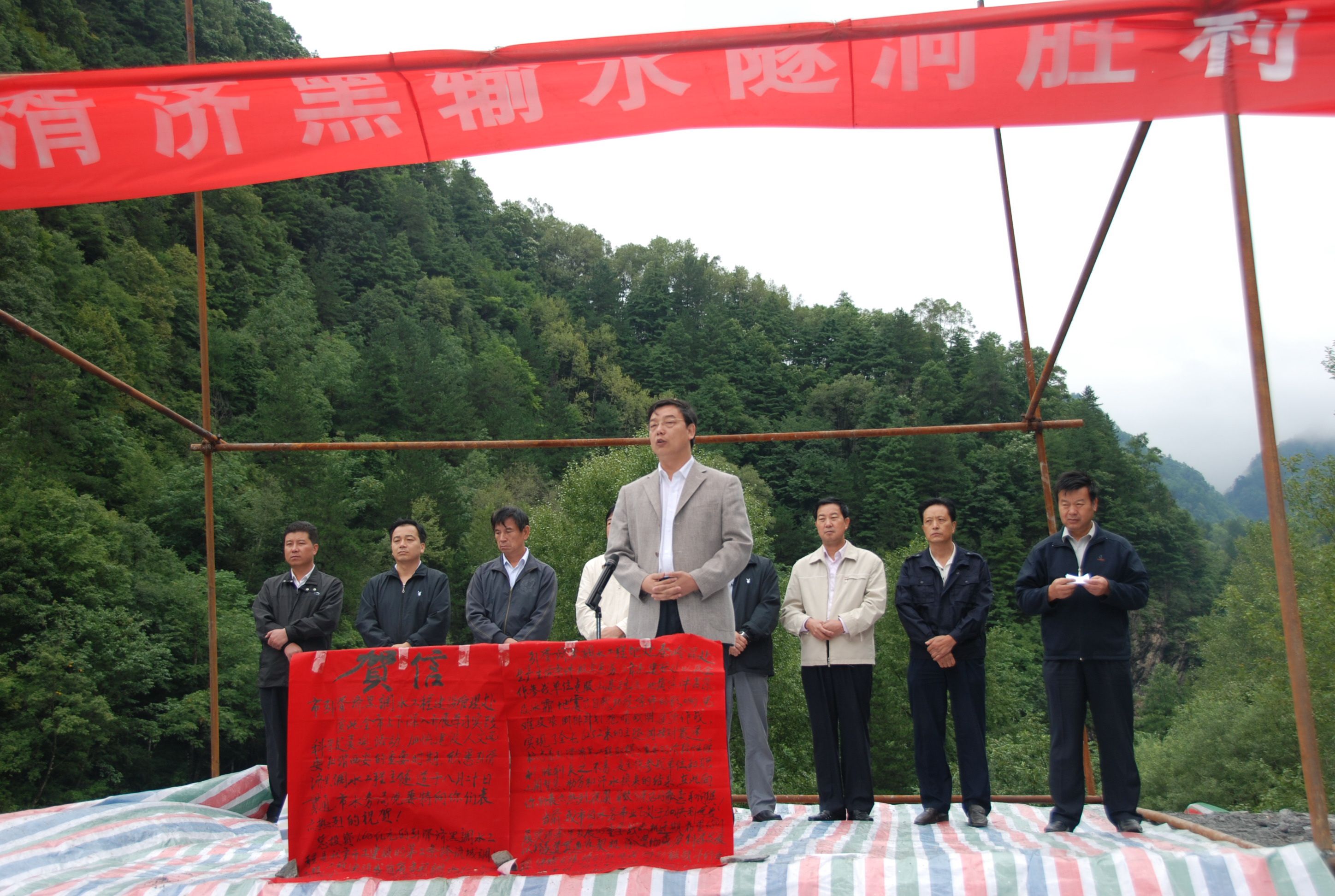 慶祝引湑濟(jì)黑輸水隧洞順利貫通儀式,公司董事長王長隨代表全體施工單位發(fā)言