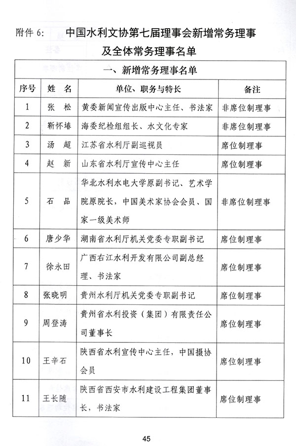 中國水利文協(xié)第七屆會員代表大會二次會議已于2018年4月24日在武漢召開。會議表決通過了第七屆理事會新增理事及常務理事名單。西安市水利建設工程集團有限公司被吸收為新增單位會員常務理事單位,公司董事長王長隨同志被選舉為協(xié)會席位制理事。
